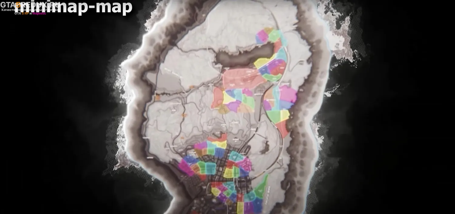 Кастомная мини-карта с отображением количества жизней + большая светло-серая векторная карта с отображением важных мест.